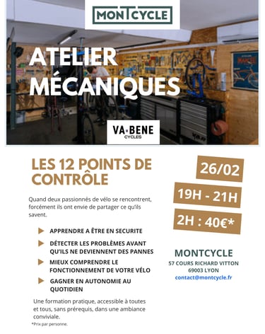 Rejoignez-nous chez MontCycle pour apprendre à maîtriser les 12 points de contrôle vélo, dans une ambiance conviviale.